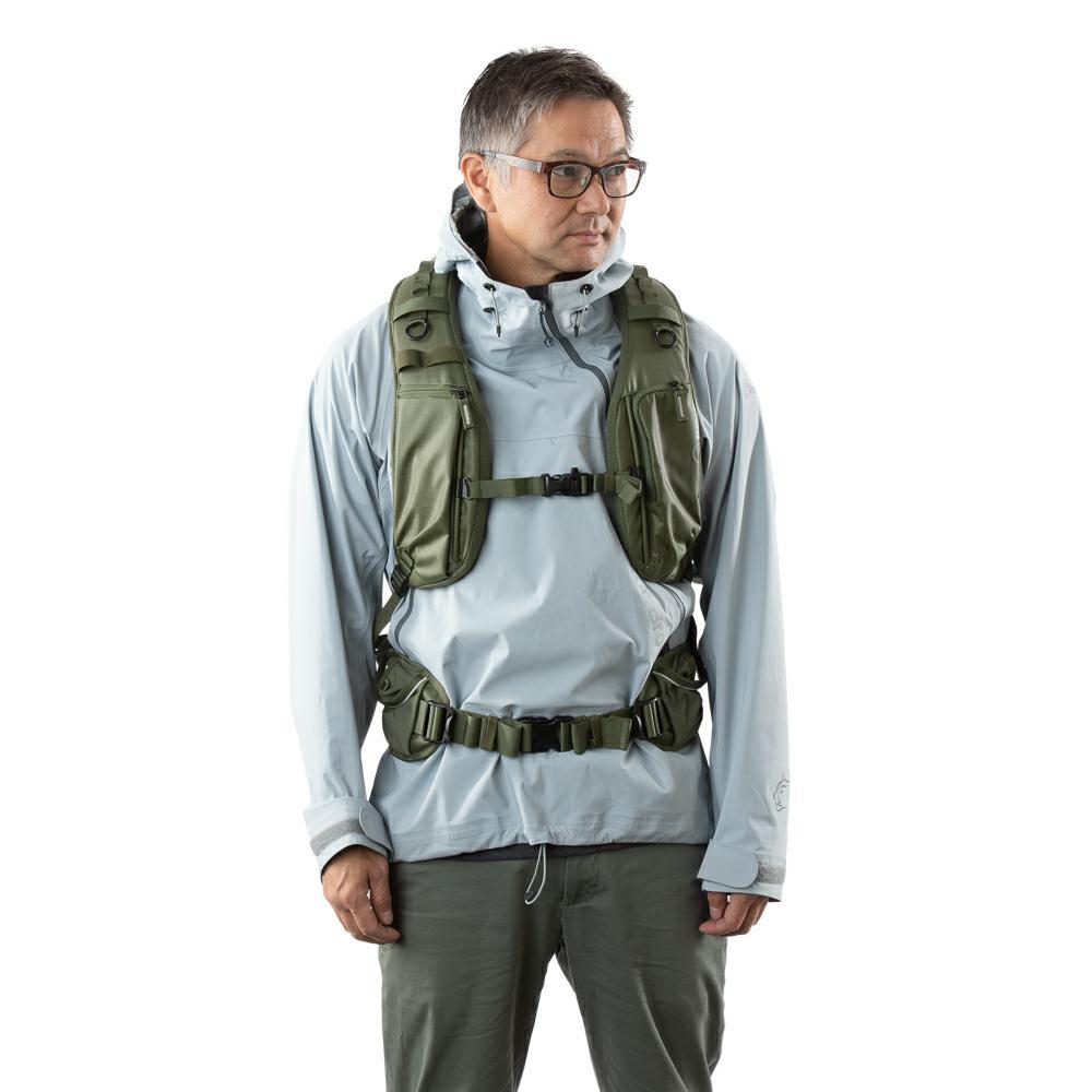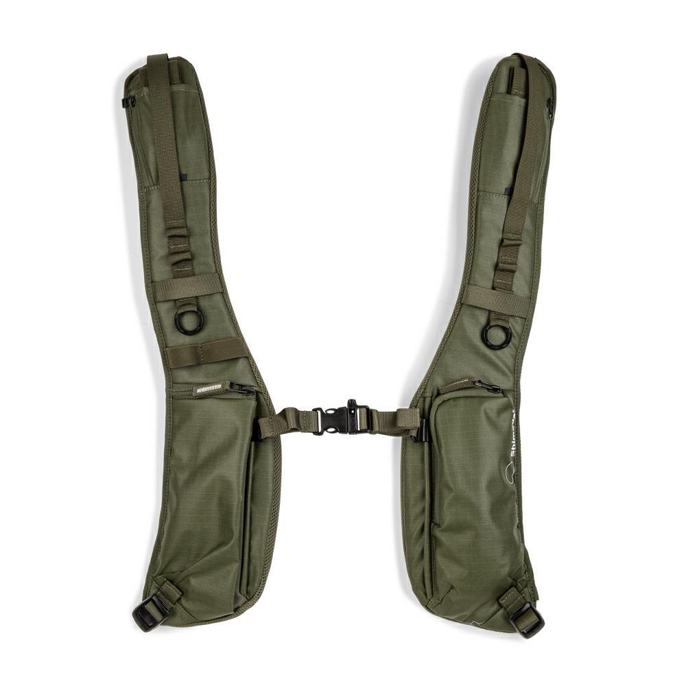 Ramenní popruhy Shimoda Men's Plus jsou určeny pro uživatele batohů Action X30, X50 a X70. Poskytují větší tlumení a pohodlí při túrách s těžším nákladem v batohu. Vizuálně připomínají vestu a pomáhají rozložit váhu na ramena a hrudník. Levý opasek má zvětšenou kapsu na velký smartphone a pravý opasek má kapsu na láhev s vodou o objemu až 750 ml. Pásy mají také hrudní popruh a zabudované úchyty pro další příslušenství.
