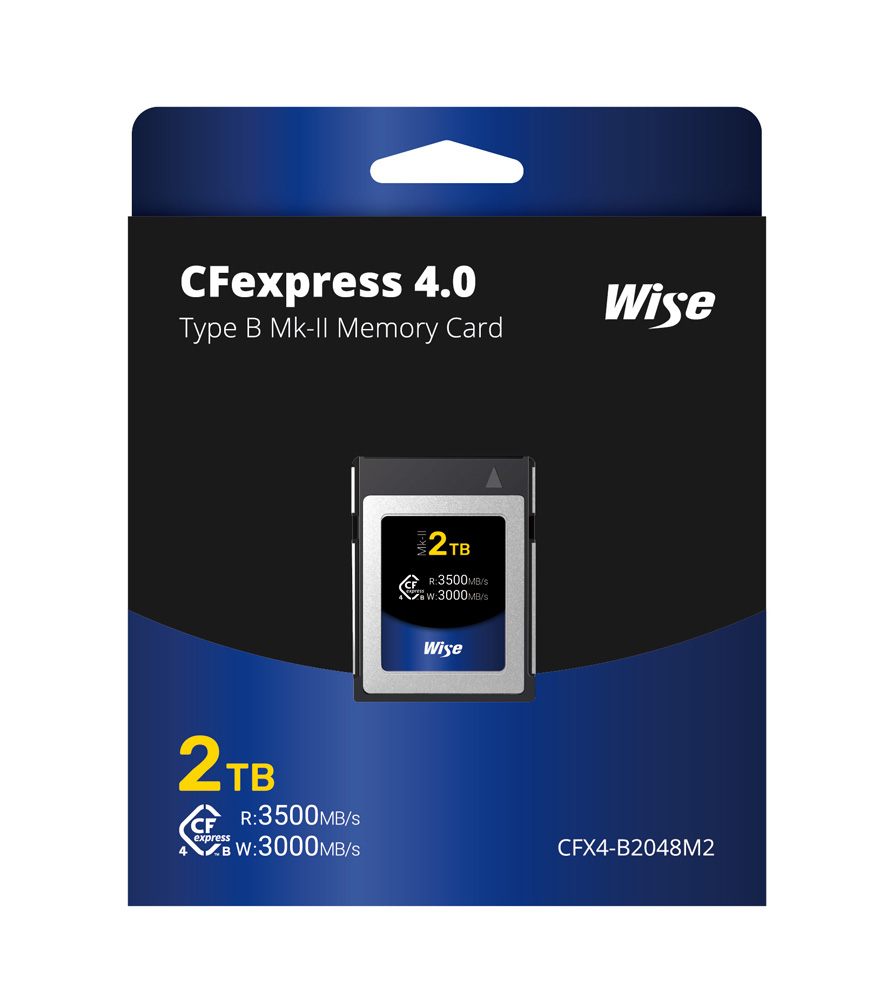 CFX4 B and CFX4 B PRO series CFexpress media enable rich dynamic range 8K RAW continuous shooting for high end DSLR, mirrorless and video cameras like a walk in the park. The Wise 2TB CFexpress 4.0 Type B Mk II Memory Card operates in PCIe Gen 4 x2 interface and offers high speed more than 6 times faster than the best XQD memory media.