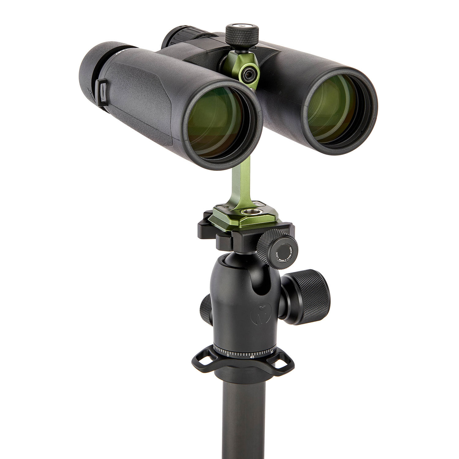 The 3 Legged Thing BINOZ Binocular Mount Moss (Green) is the multi functional tripod mount for binoculars. This Arca Swiss compatible mount has a spring loaded quick release mechanism for effortlessly connecting or disconnecting binoculars. This makes setting up and adjusting in the field easy. Ideal for birdwatchers, nature photographers and aviation enthusiasts