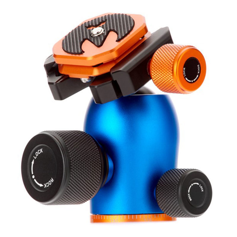 The 3 Legged Thing AirHed Pro features a knurled knob that is used to operate the ball head. The ball can be turned in different positions and the whole head can be rotated 360 degrees on the base. With a copper control knob you can fix the clamp, so that the camera is held firmly in place. The tripod head is equipped with a spirit level so that your photos always have a perfectly straight horizon. ,
