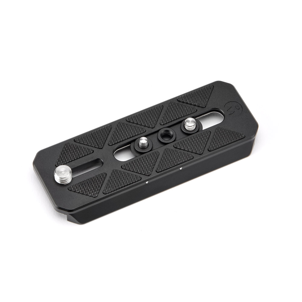 The QR CINE V is precision engineered using aerospace grade anodised magnesium alloy. It has a moveable mounting section that has both 1/4" 20 and 3/8" 16 threads along with a spring loaded, retractable, locking pin. The plate also features rubberised pads for secure connection to camera bases for better grip.