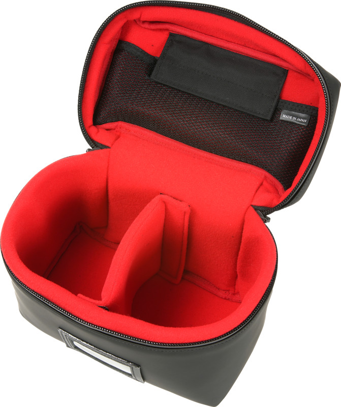Zářivě červená vnitřní polstrovaná podšívka a přepážky poskytují dostatečnou ochranu fotoaparátu. Aby se zabránilo kontaktu zipu s vybavením uvnitř při otevírání a zavírání pouzdra, jsou vnitřní stěny vyšší než zip. Vnitřní síťovaná kapsa na horní vnitřní straně pouzdra je ideální pro uložení drobných předmětů, jako jsou karty SD. Držák štítků na přední straně usnadňuje inteligentní organizaci a rukojeť umožňuje snadné vyjmutí z brašen nebo úložných prostor.