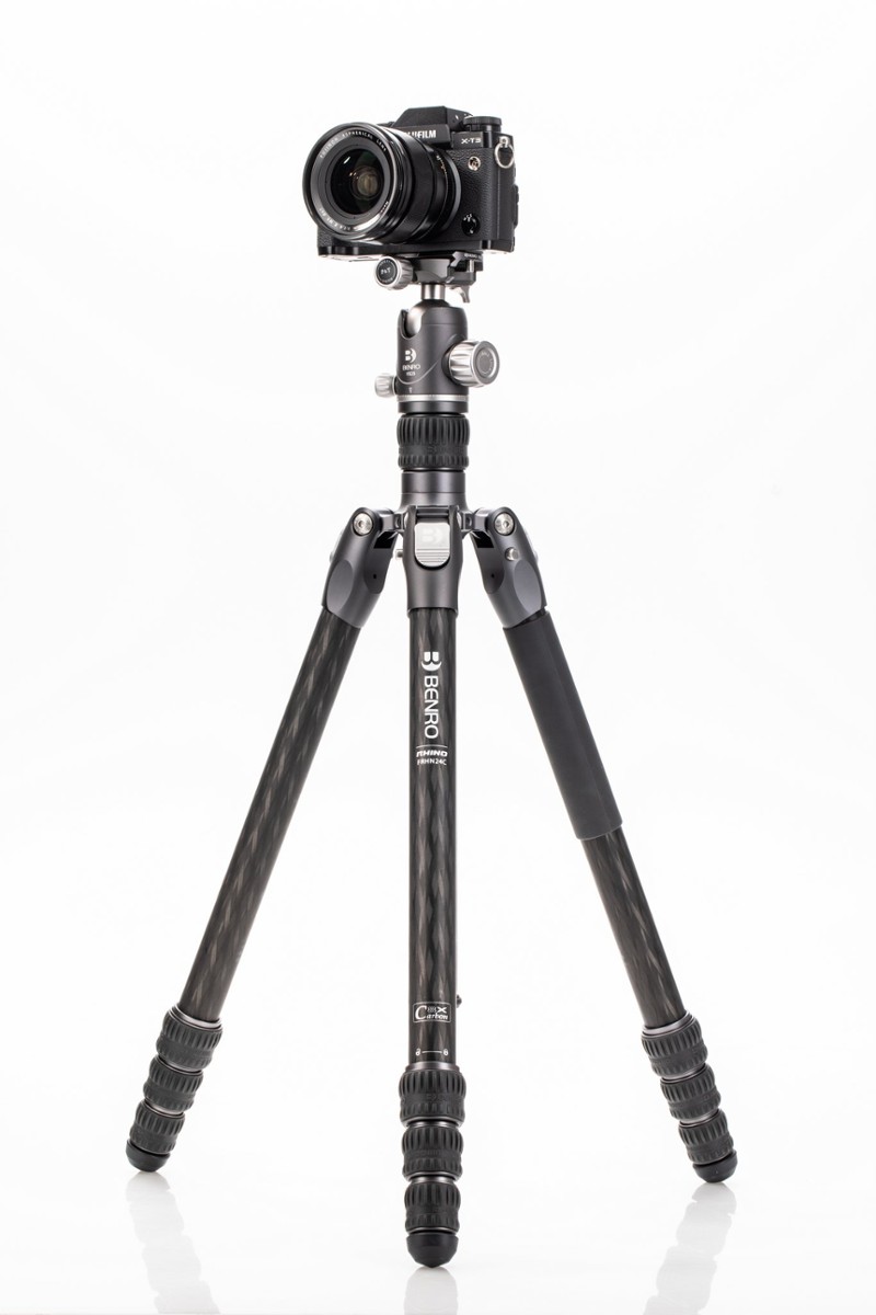 Benro Rhino to nowa seria statywów podróżnych w których projektanci starali się osiągnąć idealną równowagę rozmiarów i wagi bez utraty niezbędnej stabilności. Model FRHN24C to 4 sekcyjny karbonowy statyw o kompaktowych rozmiarach i małej wadze stworzony dla aktywnych fotografów. Karbonowe nogi składane do tyłu powodują że statyw jest łatwy do transportu i nie zajmuje wiele miejsca w bagażu. Nogi można niezależnie rozkładać i blokować w trzech pozycjach oraz dysponują automatyczną regulację kąta nóg dla szybkiego i pewnego ustawienia. Połączone są ze sobą aluminiową bazą w której znajduje się kolumna centralna. Baza posiada również 3 gwinty montażowe 1/4” służące do instalacji akcesorii. Kolumna centralna jest również częścią monopodu jaki można uzyskać montując ją z jedną z odkręcanych nóg. Nogi zakończone są gumowymi stopkami wyprofilowanymi tak aby zapewnić najlepszą przyczepność niezależnie czy nogi ustawione są pionowo, pod kątem czy prawie poziomo.