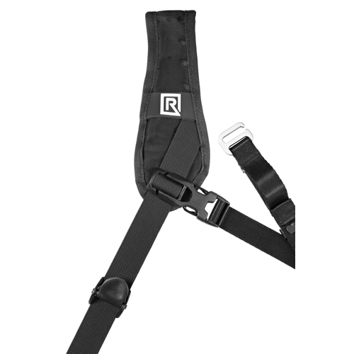 The BlackRapid Curve Breathe is designed for the right handed photographer and hangs from over the left shoulder to the right hip. The carry strap has a wide curved shoulder pad that allows it to adapt ergonomically to the female body. An extra large shaped shoulder pad provides far reaching carrying comfort, making this carry strap suitable for both the adventurous and the sports photographer.