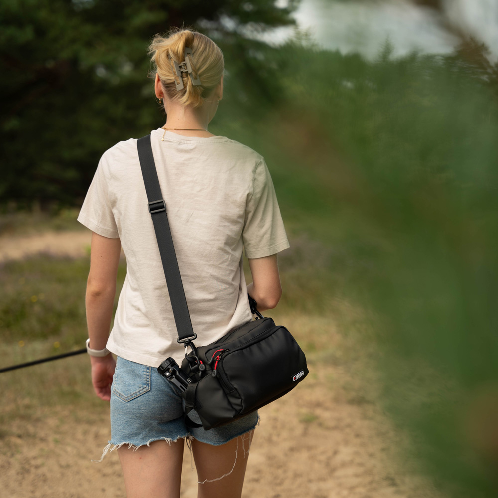 The Caruba Compex Switch 100 is a compact camera bag. The bag has a handy detachable shoulder strap and can also be worn as a waist bag. It is perfect for safely storing and transporting your camera and accessories.