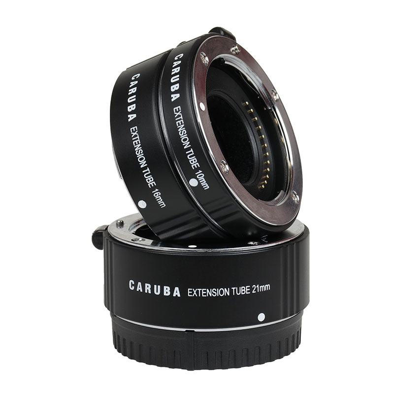 The Caruba Extension Tube set for Nikon consists of three extension tubes that can be used separately, or combined. The extension tubes do not have any optical elements, which makes it possible to photograph subjects larger and from a closer distance, without changing the quality of the image. The extension tubes have a chrome base and are compatible with Nikon 1 series lenses. Features such as auto focus and TTL light metering continue to work as usual. However, manual focusing is recommended, as focus is very tight.