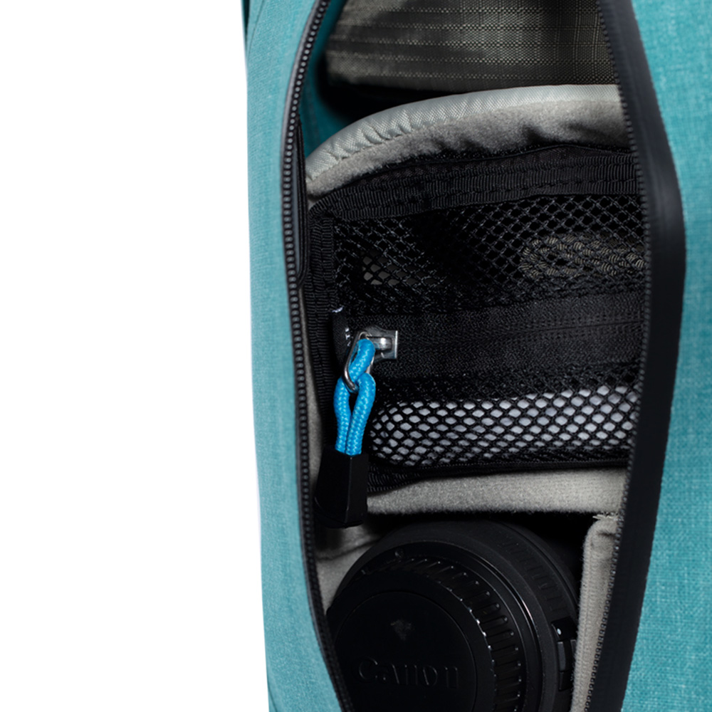 The top of the bag can be rolled up so that you can adjust the volume of the Dyota to the size of the content. You can also access your equipment from the top. ,