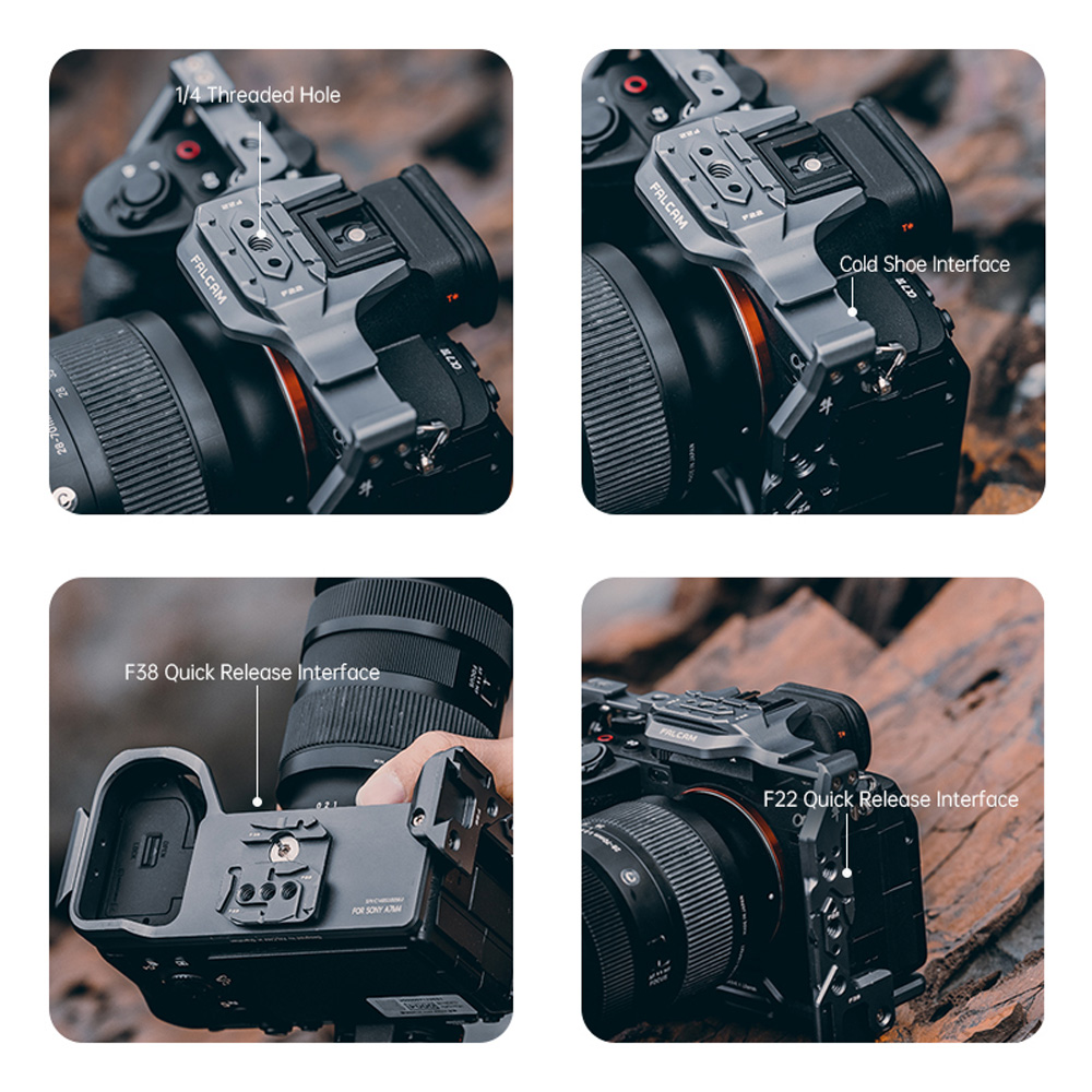 The Falcam 2824A F22 & F38 & F50 Quick Release Camera Cage V2 is suitable for the Sony A7M4 camera system. It allows you to attach accessories to your camera, and easily switch between setups.