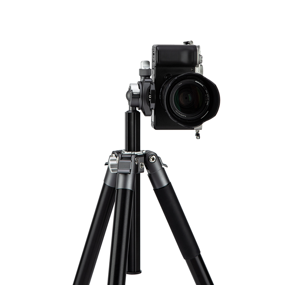 The tripod ensures that you can always position your camera correctly and with the adjustable legs it is possible to put your camera in any position.  Extending and locking the legs can be done in 1 second so you won't miss a moment. The odd centre column effectively shortens the distance between the three legs.