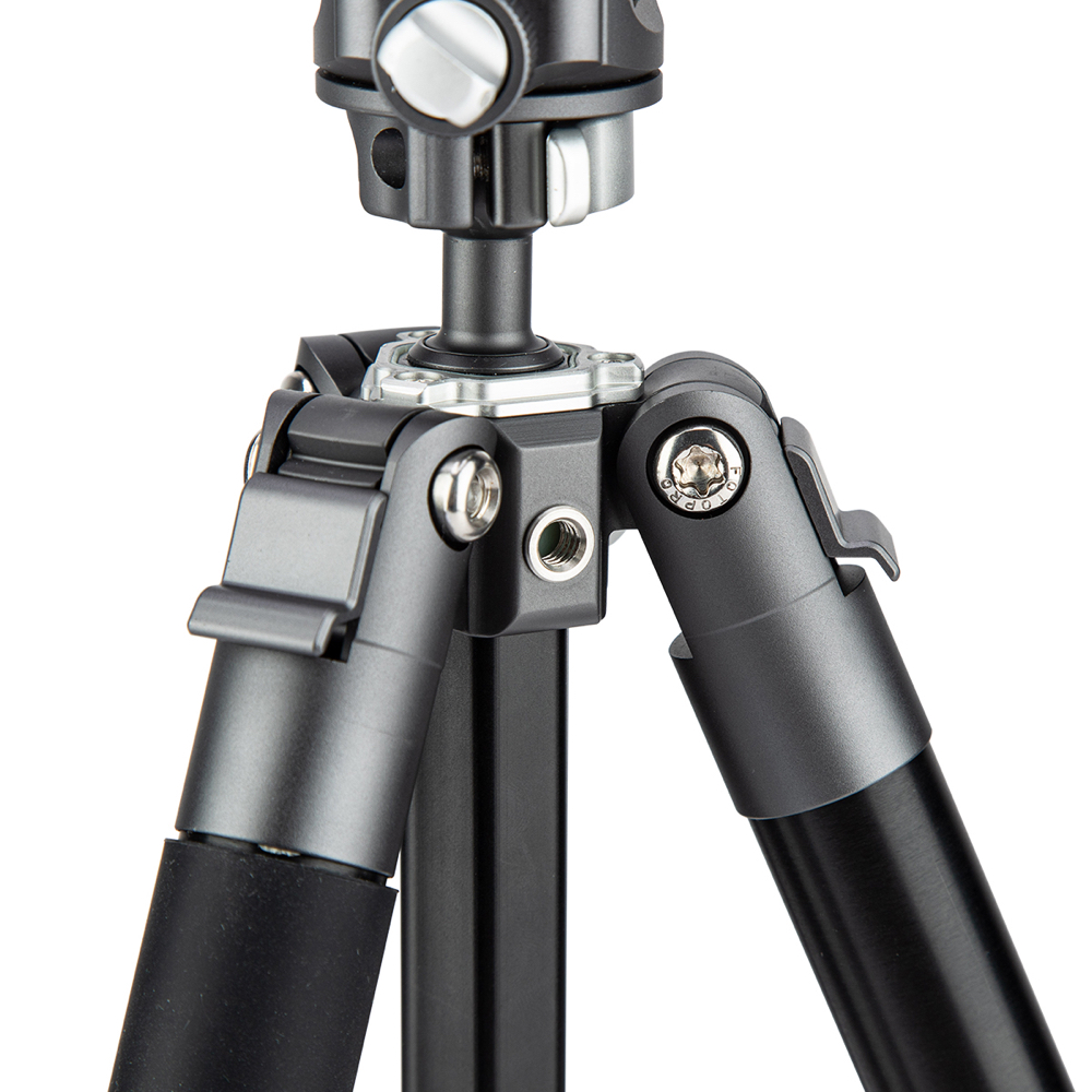 With a maximum length of 1505 mm and a weight of only 1.006 kg, the Fotopro Fly 1 Aluminium Grey/Black Tripod is a very compact tripod and gives a lot of stability.
