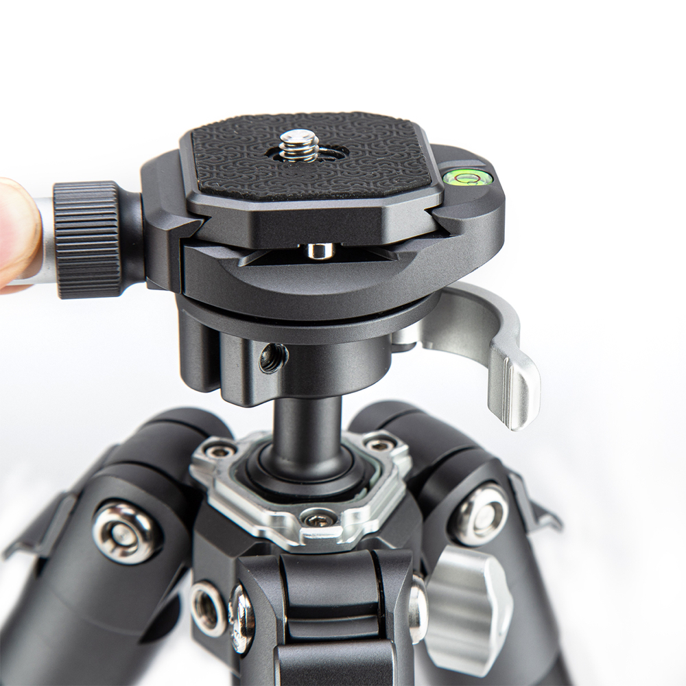 A phone holder is hidden inside the middle column at the bottom, which you can attach directly to your ball head to use your mobile phone.