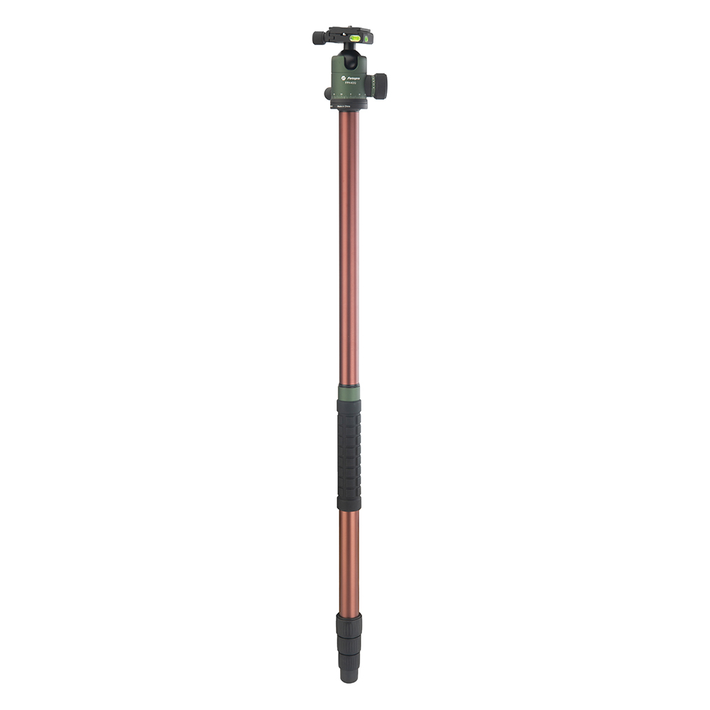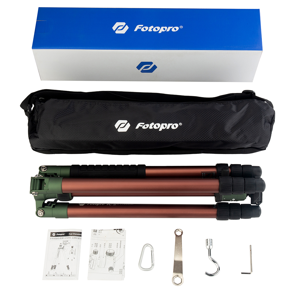 The Fotopro X Go Predator is a 4 section Aluminum support that has a twist lock leg system that allows, along with the rapid center column, for a maximum height of 172cm. Splaying the legs completely out enables the tripod to go as low as 47cm, and the variable leg angles allow the tripod to conform to uneven terrain.