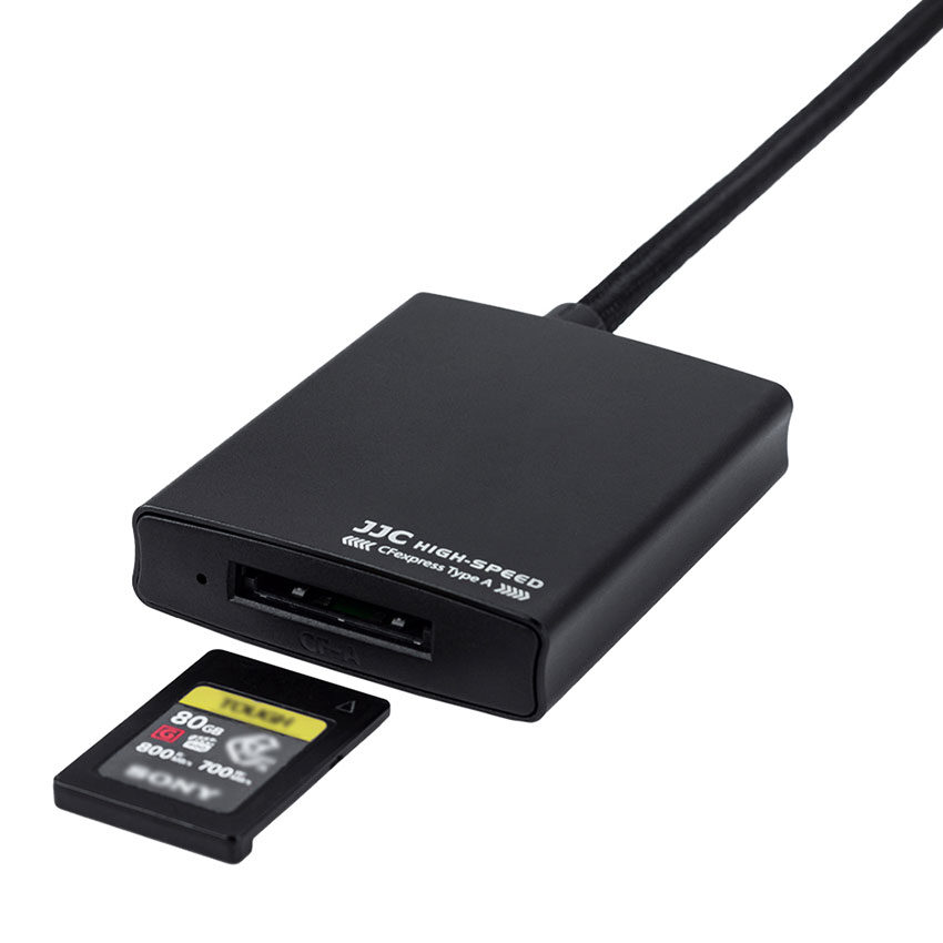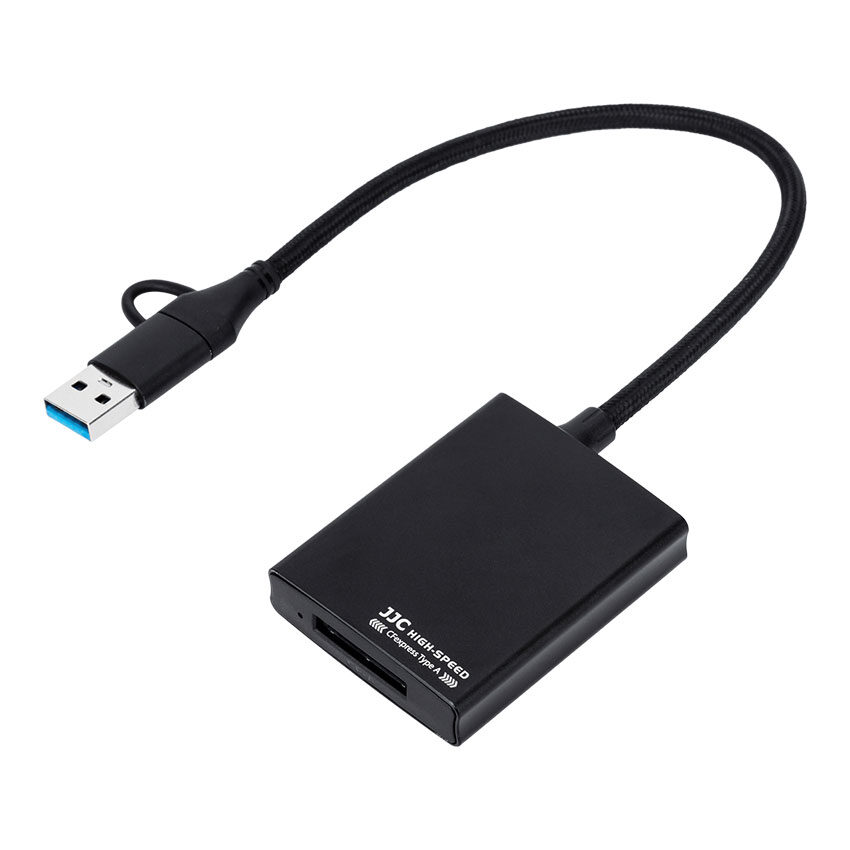 Are you done with your files being transferred so slowly. Luckily, JJC has designed the JJC CR CFA BLACK Card Reader this card reader is designed for CFexpress Type A cards and it supports USB 3.2 Gen2. With a transfer speed of 10Gbps, you can transfer your data quickly and efficiently. With a dual connector of Type C and USB A allowing you to use the card reader for all desktop computers, laptops and mobile phone so you can use it anywhere.