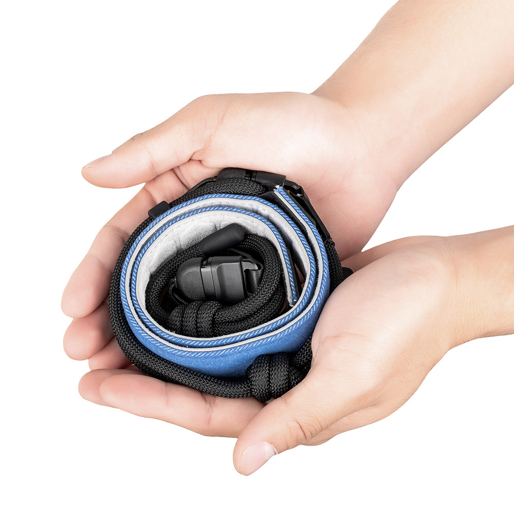 Díky vícevrstvé konstrukci poskytuje optimální oporu a rovnoměrné rozložení hmotnosti na rameni i při delším používání. Vnitřní strana s vystouplým hexagonálním vzorem zvyšuje stabilitu popruhu na rameni, omezuje sklouzávání a zároveň zlepšuje prodyšnost. Odolné 48pramenné pletené lanko zajišťuje vysokou pevnost a dlouhou životnost, zatímco silikonové zakončení pomáhá předcházet třepení konců. Praktická rychloupínací přezka umožňuje snadné nasazení i sejmutí popruhu a uzlový systém nastavení dovoluje flexibilní přizpůsobení délky podle potřeby.