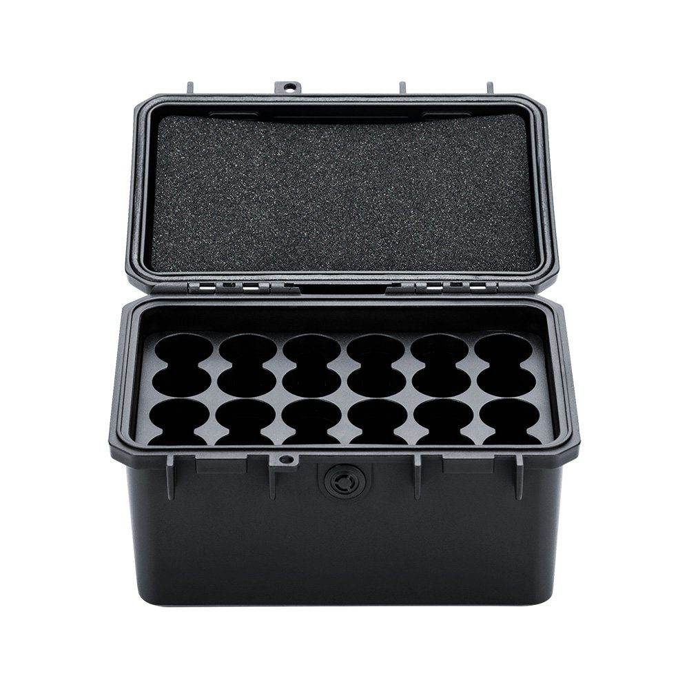 Kufr je vyroben z vysoce kvalitního a ekologického PP plastu, je odolný vůči tlaku, nárazuvzdorný, robustní, nabízí dlouholeté spolehlivé používání a účinně unese hmotnost plné baterie. Matný povrch nabízí příjemný pocit v ruce. Díky prvotřídnímu těsnění O-kroužkem na vnitřní straně je pouzdro utěsněno proti působení vody a prachu podle normy IP 67 a udržuje vnitřek v suchu a bezpečí. ,