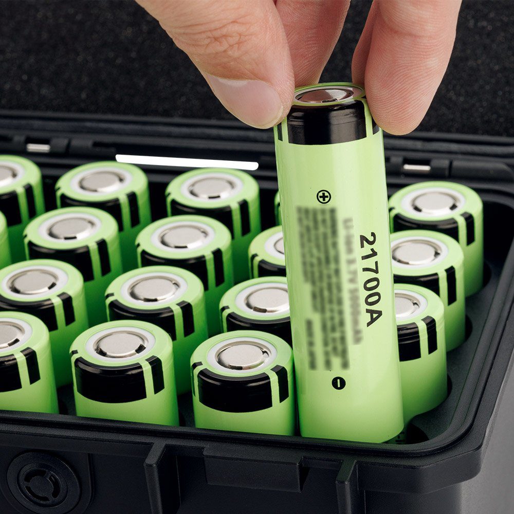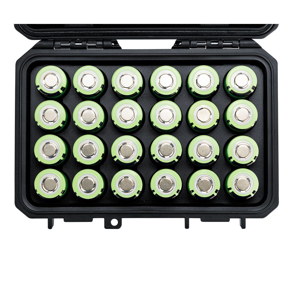 Pojme 24 kusů baterií 21700 (nejsou součástí dodávky)