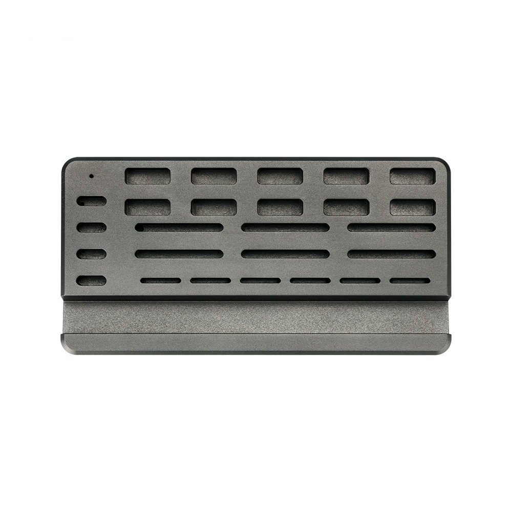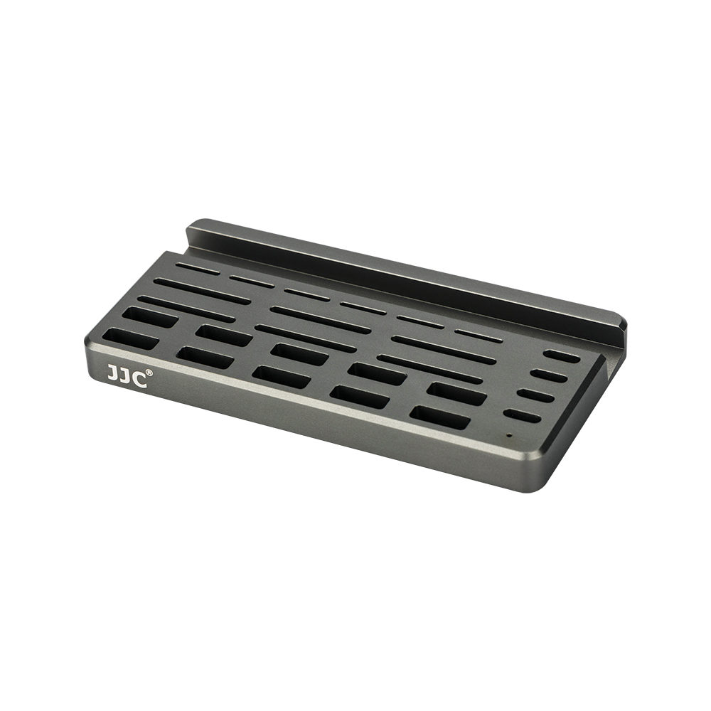 The JJC UMS M1 Desk Organiser Grey is a convenient and stylish aluminium smartphone and memory card holder in one for your desk. The UMS M1 has room for 6 SD cards, 6 Micro SD cards, 10 USB A USB sticks, 4 USB C USB sticks and a smartphone. ,