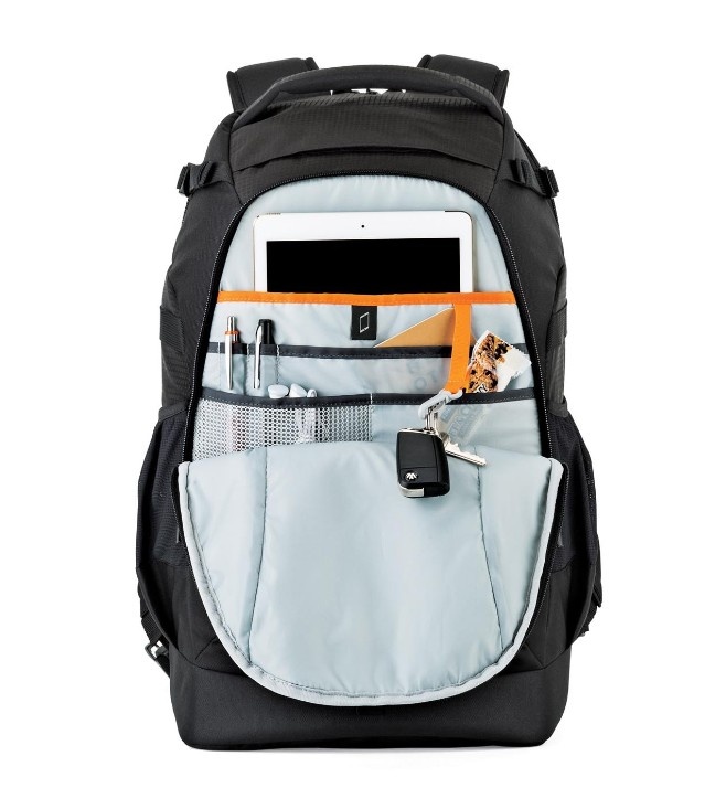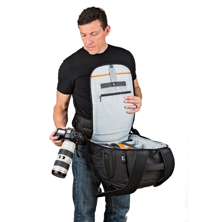 Bez obav naložíte svou profesionální bezzrcadlovku nebo DSLR s gripem, extra objektivy i další těla fotoaparátů nebo kompaktní dron plus 15” notebook, 10” tablet a stativ. Náš typický flipside design poskytuje zvýšenou bezpečnost, udržuje vybavení v bezpečí a snadno dosažitelné, ať vás den zavede kamkoli.