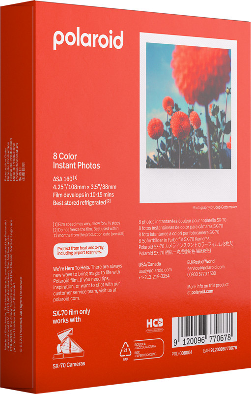 Fotografie se začne objevovat během 2 minut. Celý vývoj trvá asi 10-15 minut. Film SX-70 má nižší ISO než naše ostatní filmy, což je ideální pro zachycení jemných detailů za dobrých světelných podmínek. Tento film dělá fotky s bohatou barvou, vyváženými tóny, výraznou analogovou strukturou a je oblíben umělci i profesionálními fotografy. Je to skvělá volba pro každého, kdo chce posouvat své hranice ve světě fotografie.