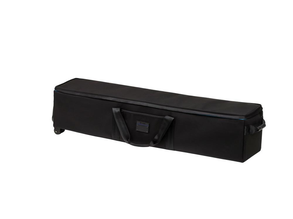 Transport Rolling Tripod/Grip Case 48` to solidna, mobilna torba na kółkach przeznaczona do przewożenia statywów, lamp, blend, parasolek i innych akcesoriów o długości do 122 cm. Jej konstrukcja łączy lekkość z wysoką odpornością – wykonana jest z nylonu balistycznego 1680D, który zapewnia ochronę przed wodą, przetarciami i uszkodzeniami mechanicznymi. Dzięki przemysłowym kółkom na łożyskach tocznych transport nawet ciężkiego sprzętu staje się płynny i wygodny. Wnętrze wyłożone jest trwałym materiałem, który zabezpiecza sprzęt przed zarysowaniami, a wszyte pasy mocujące stabilizują zawartość w trakcie podróży. Idealna zarówno do pracy w terenie, jak i do transportu lotniczego. Specyfikacja techniczna: Waga: 5,4 kg Wymiary zewnętrzne: 124 × 27 × 27 cm Wymiary wewnętrzne: 122 × 24 × 24 cm Materiał: nylon balistyczny 1680D, wodoodporny Pojemność: sprzęt o długości do 122 cm