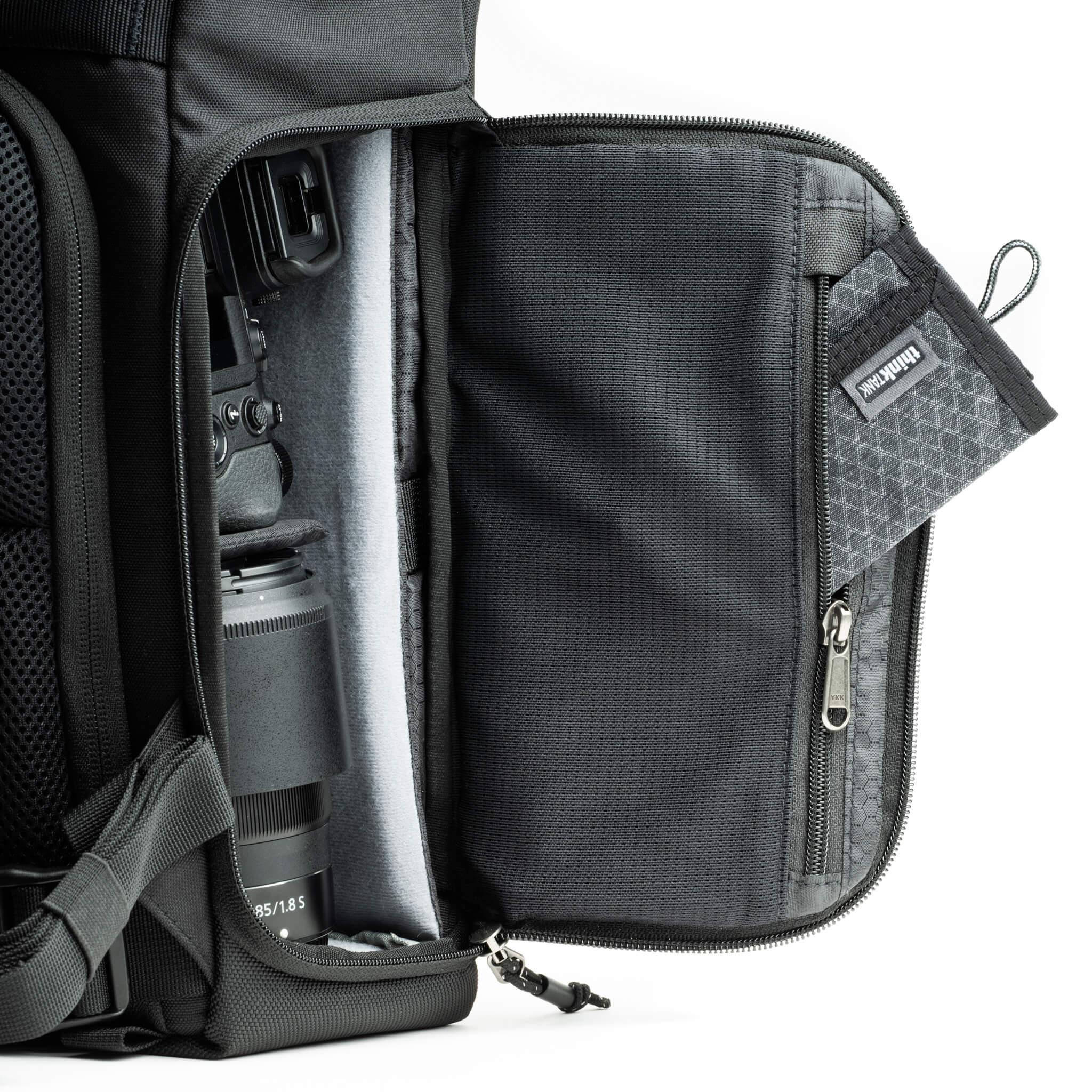 Batoh nabízí dvojí přístup k vybavení – boční a zadní – což zaručuje rychlé a pohodlné vyjmutí fotoaparátu v každé situaci. Klíčovým prvkem je plně vyjímatelná fotografická vložka, která umožňuje přeměnit batoh na prostor pro osobní věci. Horní roll-top uzávěr flexibilně zvětšuje objem a 10 speciálních kapes, včetně polstrované přihrádky na notebook, zajišťuje perfektní organizaci. Celý batoh je vyroben z ekologických recyklovaných materiálů (certifikát bluesign) a součástí balení je pláštěnka.