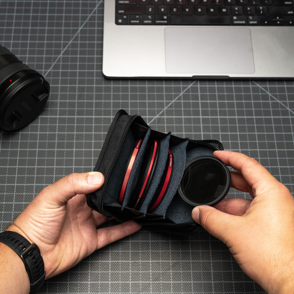 Pouzdro je malé, aby se snadno přenášelo v kapse, kabelce nebo brašně na fotoaparát. Pouzdro chrání vaše filtry před poškrábáním, prachem a nárazy. Je vyrobeno z prvotřídního materiálu a je odolné proti povětrnostním vlivům,