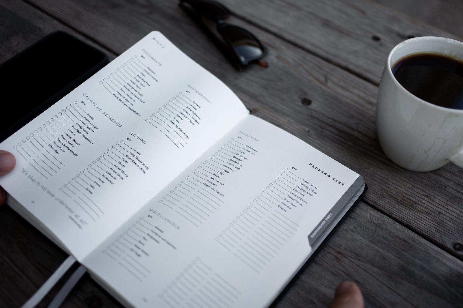 Reisdagboek met 240 pagina's inclusief secties met uitgebreide reisplanners en logboek